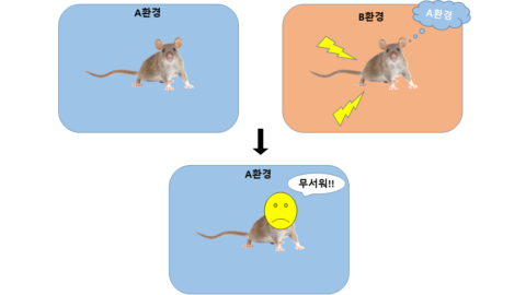 먼저 쥐를 A 환경에 노출시키고, 그때 A 환경에 반응하는 세포들, 즉 A 환경에 대한 기억을 담고 있는 세포들을 표지(labeling) 했다. 그리고는 B 환경에 쥐를 들어가게 한 다음 전기 충격을 주어 B 환경에 대한 공포 기억을 만드는 도중에 A 환경의 기억을 담고 있는 세포들을 활성화하였다. 즉 B환경에 대한 공포 기억을 만들 때 A 환경에 대한 기억을 회상시킨 것이다. 그러고 나서 쥐를 A 환경에 들여보냈더니, 놀랍게도 쥐는 A 환경에서 전기 충격을 받은 적이 없음에도 A 환경에 대한 공포 반응을 보였다. 다시 말해, B 환경에 대해 공포 기억을 심는 도중에 인위적으로 A 환경을 회상하게 하여 A 환경에 대한 잘못된 기억을 만들어내는 데 성공한 것이다.