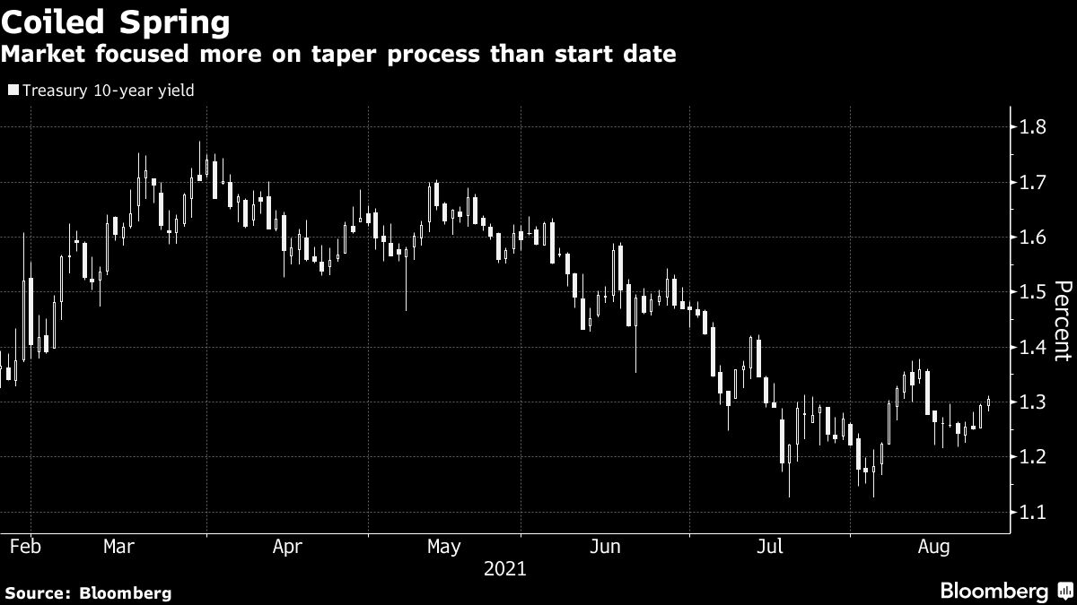 カンザスシティー連銀が主催する年次シンポジウム(ジャクソンホール会合)を27日に控え、金融市場では最近大きな動きはほとんど見られない。同会合では、当局が債券購入の縮小をいつ、どのような形で開始するかについて、米連邦準備制度理事会(FRB)のパウエル議長が何らかのシグナルを発する可能性がある。テーパリングが明確になることで、利上げ開始に向けた見通しも定まることになる。