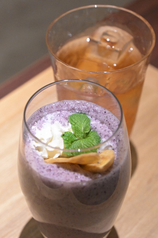 メニューは、渡辺王将がアップルマンゴーをぜいたくに使ったマンゴープリン(ブラックタピオカとクコの実入り)と温かいフェアトレードコーヒー。藤井竜王は立川産ブルーベリーとバナナのスムージーとアイスアールグレイティー。